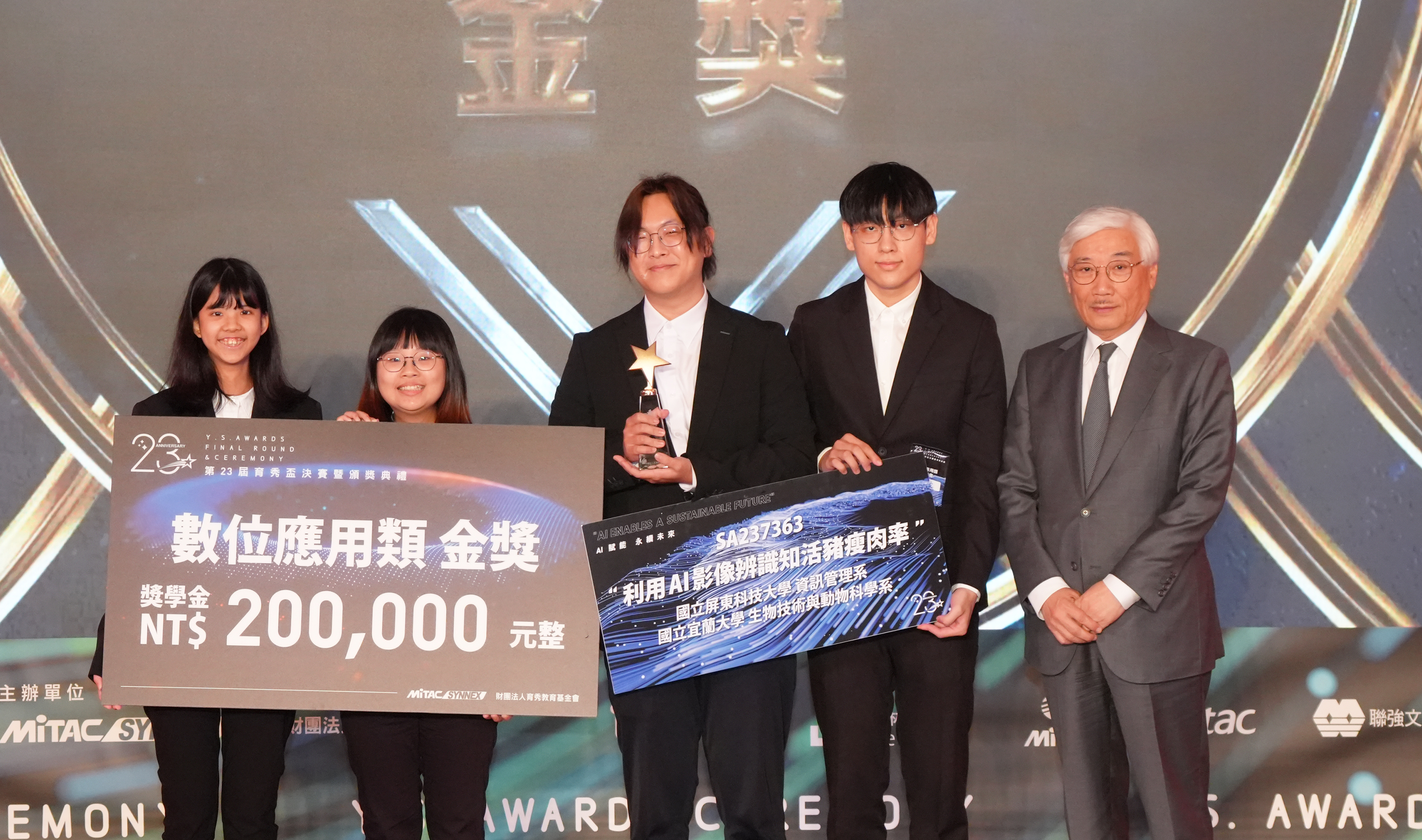 Centered on the theme “AI Enables a Sustainable Future,” the competition showcased innovations across education, energy, healthcare, finance, public safety, sustainability, digital imaging, and lifestyle applications. The projects demonstrated students' ability to solve real-world challenges, reinforcing the Y.S. Award as a premier stage for tech-driven creativity. The top honors were awarded as follows: the AI Competition (High School Category) Gold Award went to Hualien Senior High School for its “Adaptive Learning Support System”; the Digital Application Gold Award was claimed by a joint team from National Pingtung University of Science and Technology and National Ilan University for their “AI-Based Non-Invasive Live Pig Body Composition Analysis and Lean Meat Ratio Estimation System”; the Industrial Design Gold Award was presented to National Taipei University of Education for “Ladybug Breeding Station”; and the Motion Graphics Gold Award was earned by National Taiwan University of Arts for “Security System: AI Activated.”