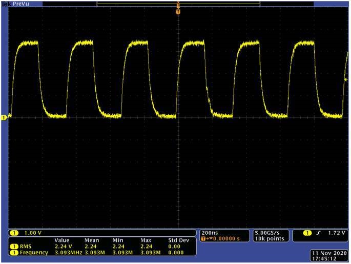 經過移除27pF及100pF的電容後,Clock波形將回歸正常,noise也會消失。