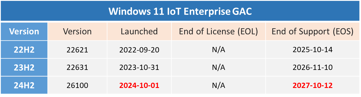 Windows 11 IoT Enterprise GAC目前總共有3個版本: