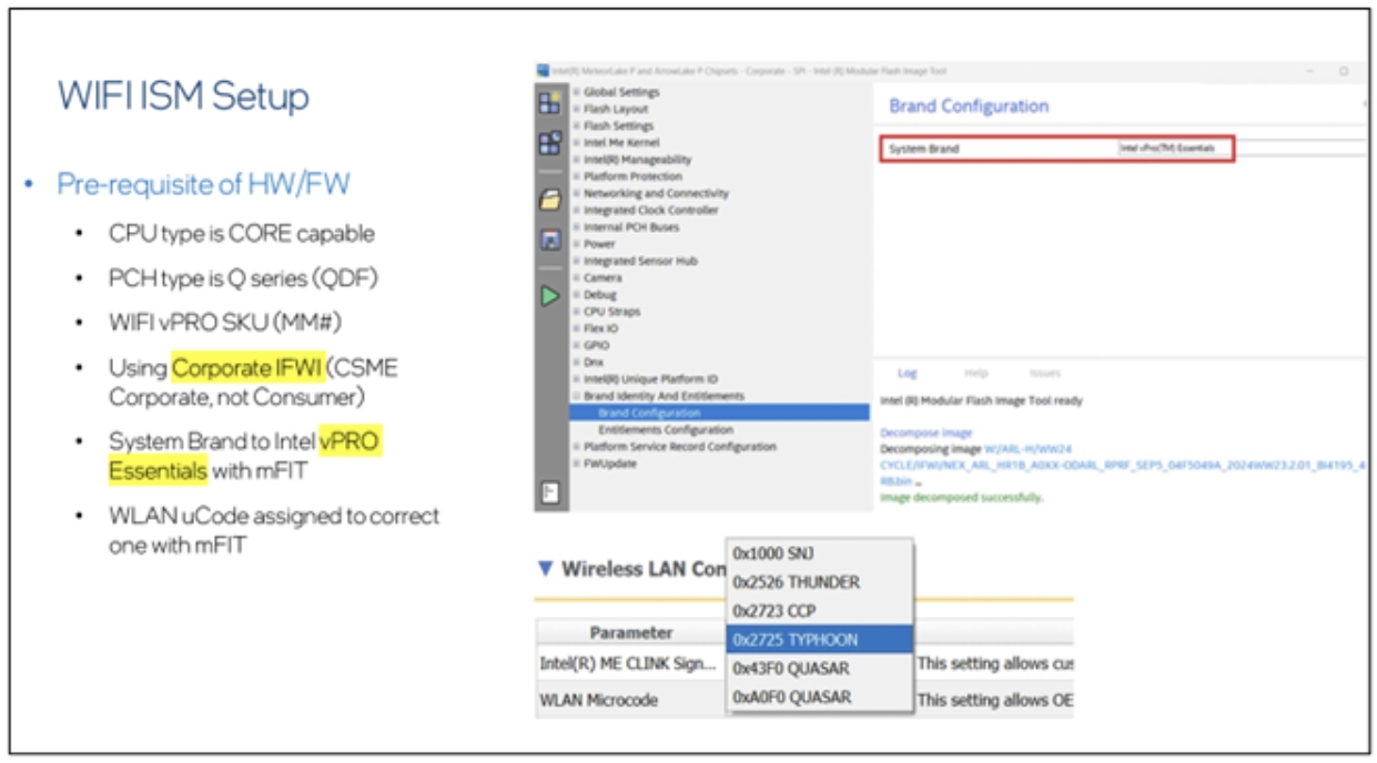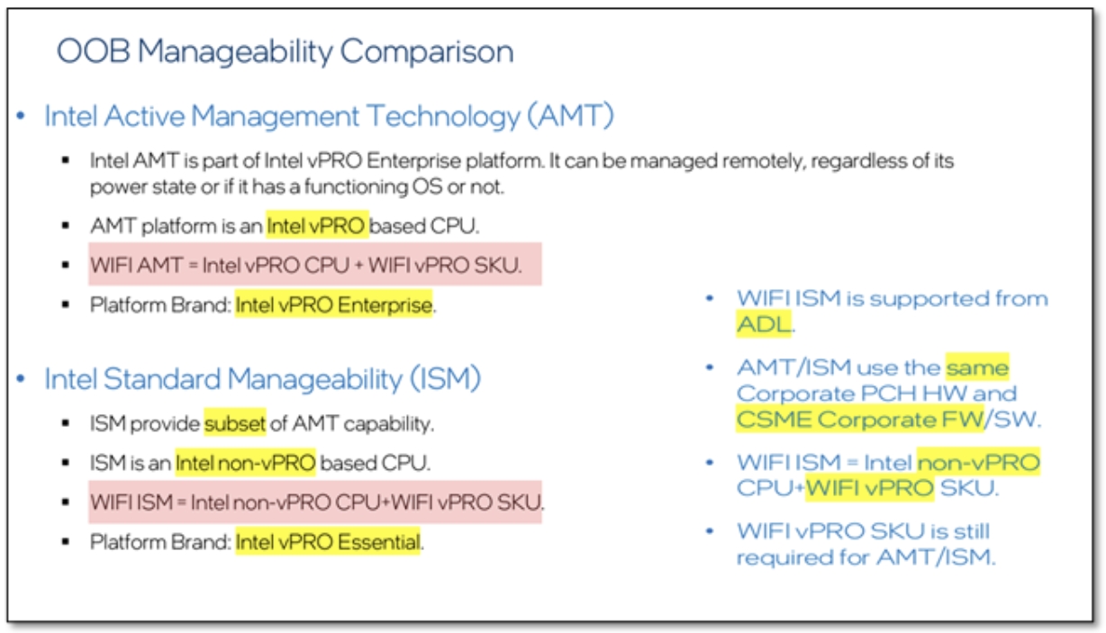 • WiFi ISM : 允許 Intel non-vPro CPU + WiFi vPro SKU module 方式支援。