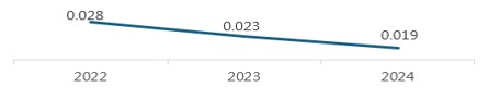 ◆ 用電密集度:2024年下降18 %,為0.14 GJ/m2